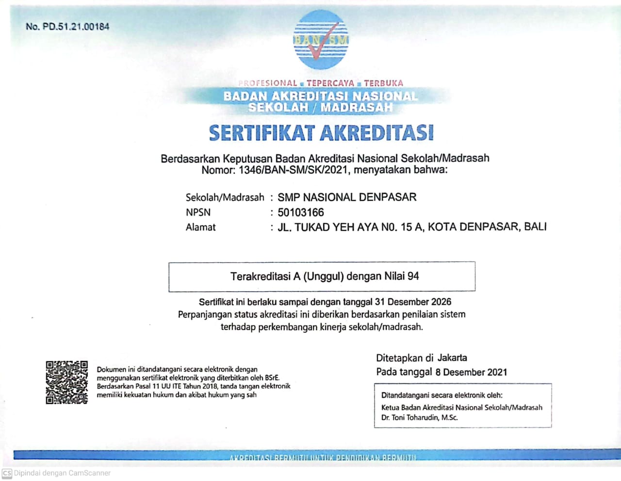 SMP Nasional Denpasar memiliki akreditasi yang baik, yang menunjukkan komitmen kami untuk memberikan pendidikan berkualitas tinggi. Akreditasi ini menjadi bukti bahwa kami memenuhi standar pendidikan nasional dan terus berupaya untuk memberikan pengalaman belajar terbaik bagi setiap siswa.